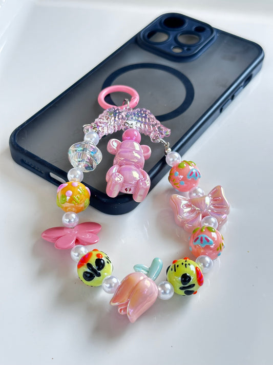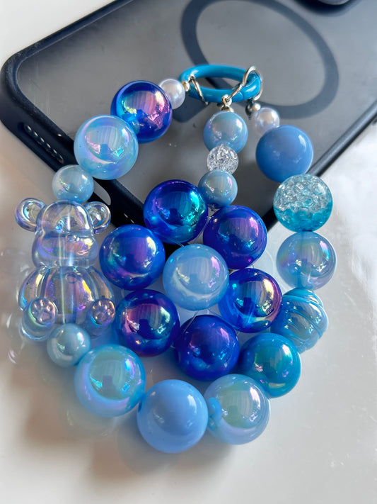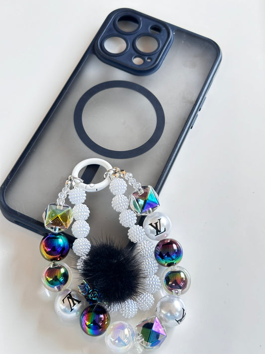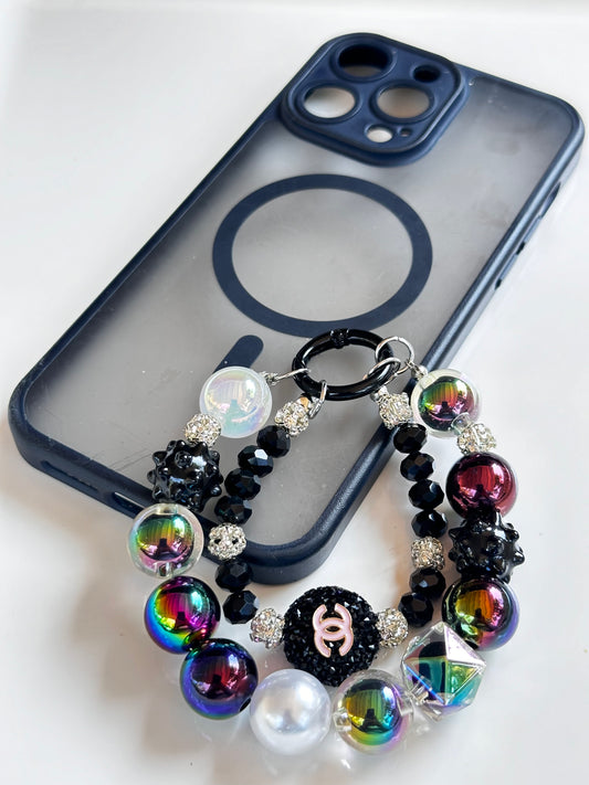 Black Onyx and Blue Lapis Lazuli Stone Bracelet with Crown Charm