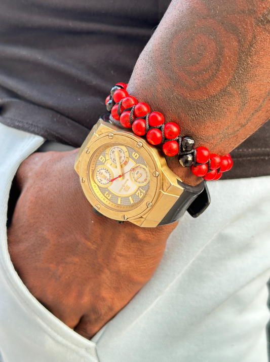 Double Row Red Turquoise and Black Onyx Bracelet