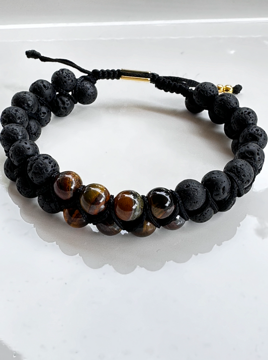 Double Row Lava Mix and Lava Stone Bracelet
