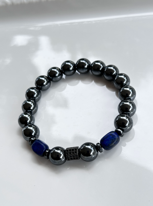 Hematite and Blue Lapis Lazuli Stone Bracelet