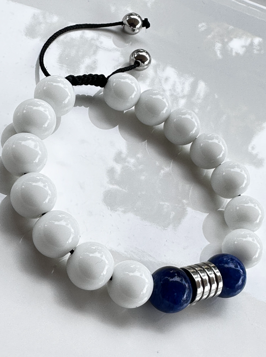 White Jade and Blue Lapis Lazuli Bracelet