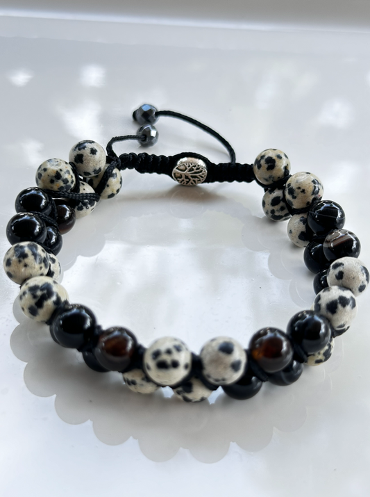 Double Row Dalmatian Jasper and Stripe Agate Bracelet